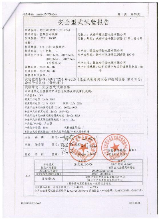 LCCV 密集型母線槽(1600A)試驗(yàn)報告