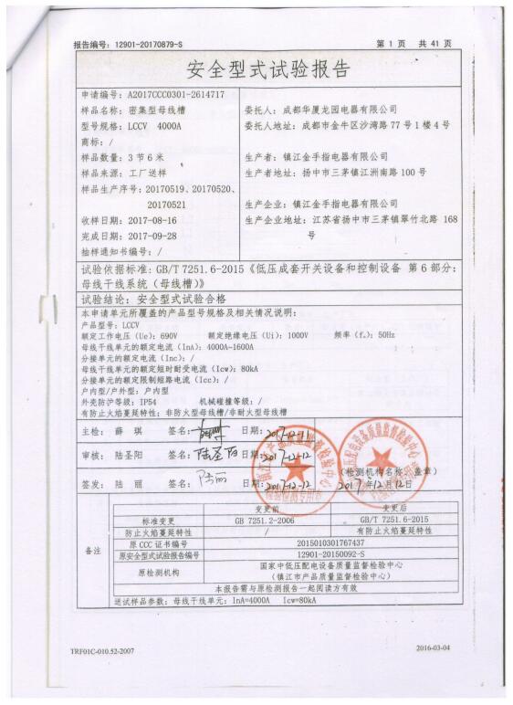 LCCV 密集型母線槽(1600A)試驗(yàn)報告